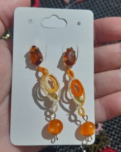 × Brinco Frivolite Mod. CF118 Base Banhado À Ouro 18k Laranja Mesclado R$56,90