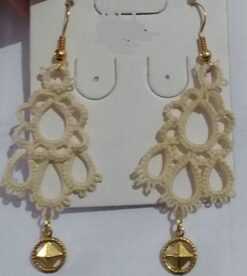 Brinco Renda Frivolite Com Pingente Modelo A34 Cor Pérola 2,5 x 6 Cm |