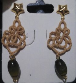 Brinco Renda Frivolite Com Pingente Modelo A42 Cor Bege 1,5 x 5 Cm |