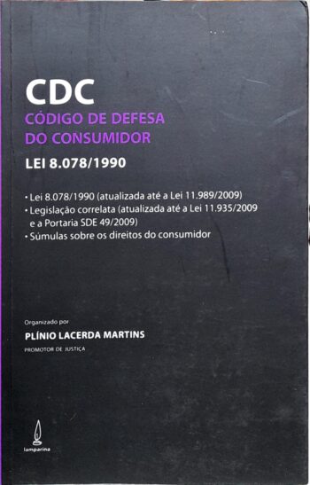 Código de Defesa Do Consumidor – Plínio Lacerda Martins 9ª Ed.. 2009. 220 páginas. Bom estado geral. Foto do próprio produto.